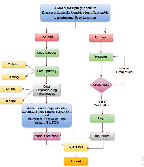The primary objective of this project is to develop a highly accurate and reliable model for the diagnosis of epileptic seizures by utilizing a hybrid approach that combines the strengths of both ensemble learning and deep learning techniques. This model aims to harness the predictive power of algorithms like XGBoost (XGB), Support Vector Machines (SVM), Random Forest (RF), and Bidirectional Long Short-Term Memory (BiLSTM) to analyze EEG signals.