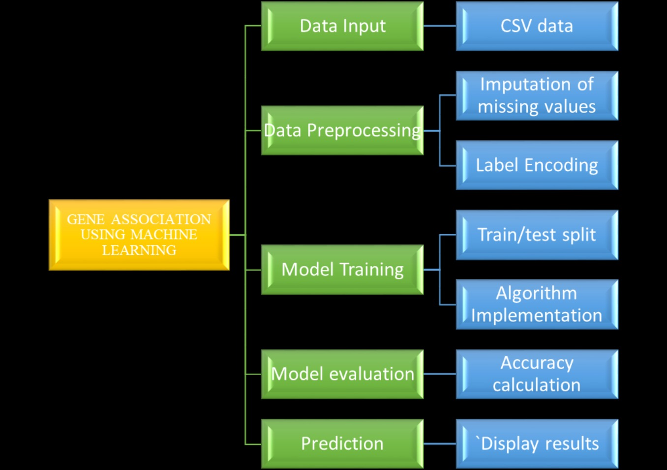This project aims to develop a machine learning framework to predict associations between genes and diseases using various models like Random Forest and XGBoost. It will categorize diseases into 'Disease', 'Group', and 'Phenotype', and enhance prediction accuracy through data preprocessing. A Flask web application will enable users to input data and research into gene-disease associations.